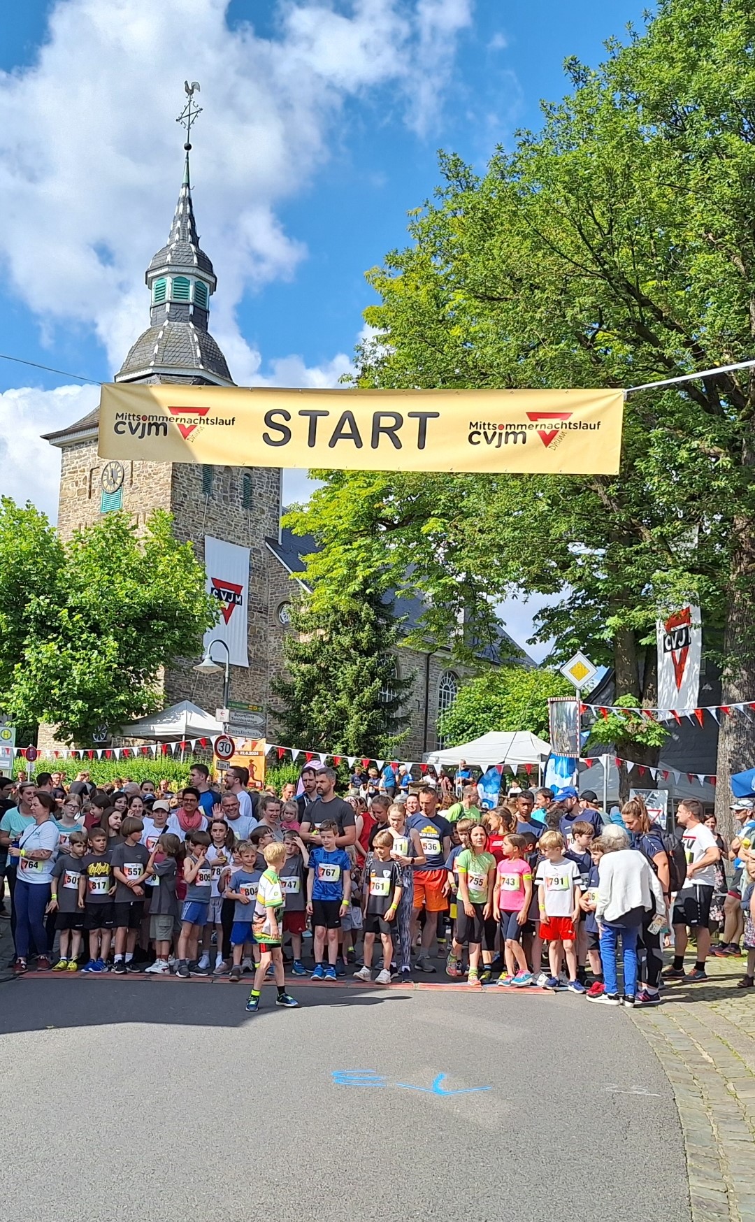 Der CVJM- Mittsommernachtslauf war auch in diesem Jahr bei optimalem Wetter- und Laufbedingungen ein Magnet für viele Laufinteressierte und Zuschauer aus unserer Bergischen Region sowie vielen Gästen, die zum Teil von auswärts angereist waren. Insgesamt hatten sich über 450 Teilnehmer angemeldet, davon erreichten 420 auf den unterschiedlichen Strecken und Disziplinen das Ziel. Mit einer solchen Rekordbeteiligung hatte das Organisationsteam des MSL nicht gerechnet, wenngleich sich der seit drei Jahren angebotene Halbmarathon mit „Crosscharakter“ bei den Läufern immer mehr herum spricht und dadurch auch sehr leistungsstarke Läuferinnen und Läufer angezogen werden. Aber auch die Traditionsstrecken über die 6 km und 10 km fanden wieder großen Zuspruch und auch auf den 3 Kilometern durch das Dorf gaben viele Kinder, die zum Teil auch in Begleitung der Eltern und Großeltern unterwegs waren, ihr Bestes.